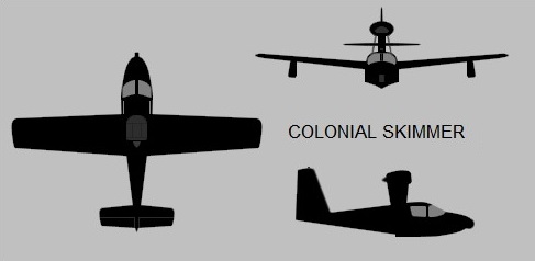 Production totals of the C-1 Skimmer are given as 22 up to late 1957. It led to the improved “C-2 Skimmer IV” during 1957, which was externally all but identical to the C-1 Skimmer, the primary change being an uprated O-320-A1A engine providing 135 kW (180 HP), permitting a higher maximum takeoff weight, enlarged horizontal tail surfaces, modified wing floats, plus structural strengthening of the wings and pylon for the increased gross weight. It was said to have seats for four, with a cabin redesign. The Type Certificate came in December 1957 and twenty C-2s had been completed at the time Colonial sold its assets, after a series of difficulties and shufflings, to Lake Aircraft Corp in late 1959.