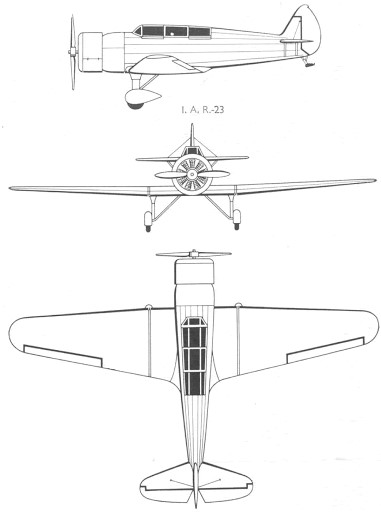 The IAR-23 was created in 1934 by the Romanian company Industria Aeronautică Română (IAR) as an attempt to design a next-generation fighter for the Royal Romanian Air Force, but because its low power, it was classified only as a civilian touring aircraft. However, it contained many advanced features for its time, including uniquely designed wings. After the installation of additional fuel tanks, it turned into a long-haul touring plane, with a maximum range of 2300 km.