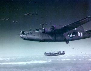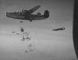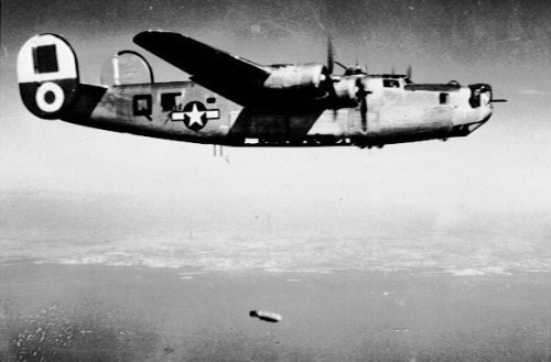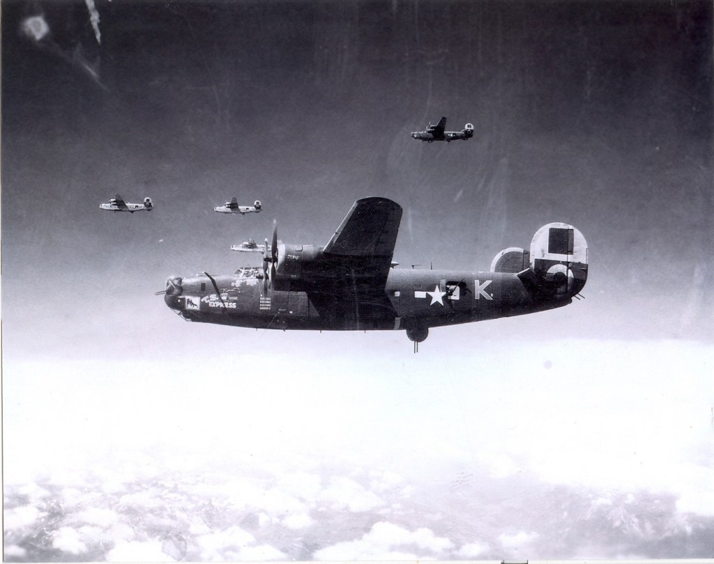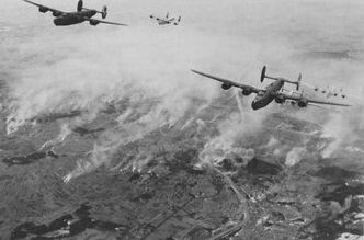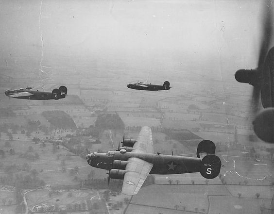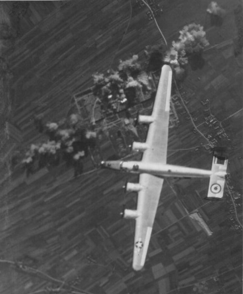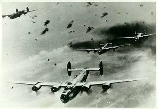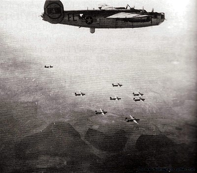 460th B-24s over Oswiecim (Ausschwitz), Poland on a Mission to a Synthetic Oil and Rubber Factory in 1944
