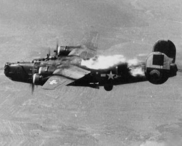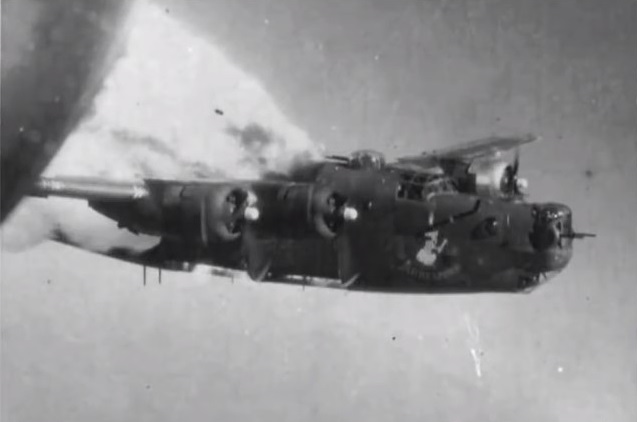 “General Nuisance”, a B-24 from the 460th BG, 761st BS, Piloted by 1st Lt. Frederick Smith is on Fire over Vienna June 16, 1944