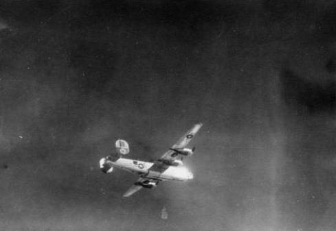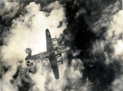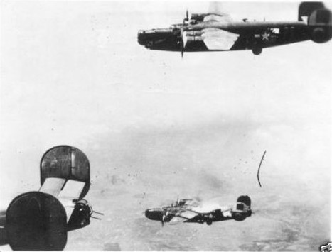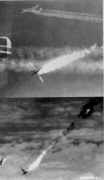 Munich West Marshalling Yard Mission, November 16, 1944 – two photos of a 465th Bomb Group B-24 shot down by anti-aircraft fire