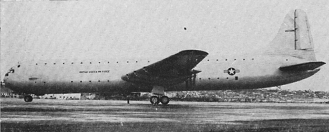 Only a single aircraft was built which flew on 23 November 1947, it subsequently acquired bogie main wheel units and weather radar. By 1955 it had carried 35 million pounds of freight in 4,000 flying hours. It was used successfully by the US Air Force for special transport operations until retired in 1957.