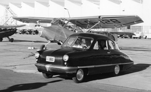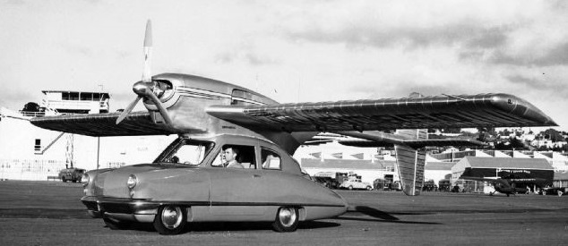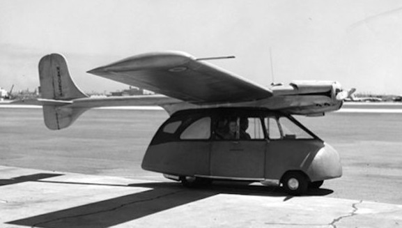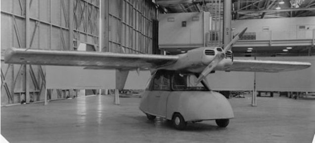 Consolidated Vultee bought rights to the original roadable design by their own Chief Development Engineer, Ted Hall. His creation was unusual in that the car portion looked exactly like a scaled down conventional automobile of the period, though suspended beneath its self contained ‘flight module’. The automobile had a streamlined glassfibre body with four seats, and was powered by a 26 hp Crosley car engine.