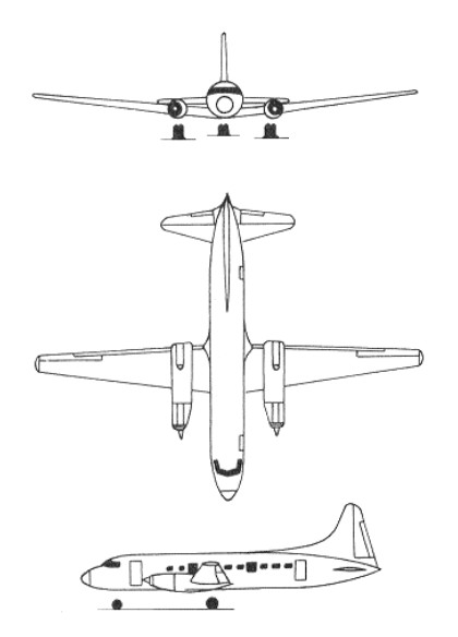 About 240 aircraft were modified from Convair 240 (Convair 600) and Convair 340 / Convair 440 (Convair 640) with the Rolls-Royce turbo-props installed.