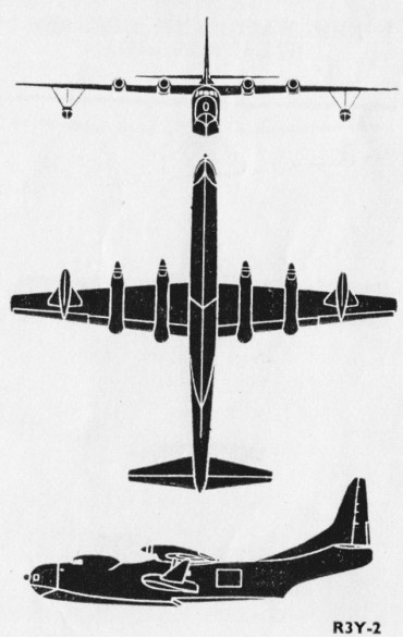 The R3Y-1 was a straight transport version, the R3Y-2 was the assault transport version with the hinged nose. It could also refuel jets in flight using two or four wing pods. The R3Y-2 had a nose loading door and integral hydraulic ramps. The opening door blocked the pilots’ forward view during beach operations.