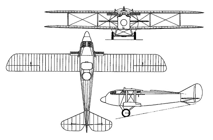 The CB (Curtiss Battleplane), unofficially known as the “Liberty Battler”, was an experimental two-seat fighter developed and flown early in 1918 as a result of difficulties being experienced with the Liberty-engined version of the Bristol F2B. Powered by a 425hp 12-cylinder Liberty 12 water-cooled engine, the CB two-bay biplane was of “Curtiss ply” construction – two layers of 5cm wide wood veneer being cross-laminated over a form to build up a monocoque fuselage shell. In an effort to maintain fuselage streamlining, the radiators were slung under the upper wing centre section, where they were found to have a seriously detrimental effect on the airflow. The fairing of the upper wing into the top fuselage contour resulted in a very narrow wing gap, with consequent aerodynamic penalties. While it provided the rear gunner with an excellent field of fire, it impaired the forward and downward view of the pilot, necessitating the provision of small windows in the fuselage sides. Flown in May 1918, the sole prototype CB proved to have extremely poor handling characteristics and crashed early in its test programme.
