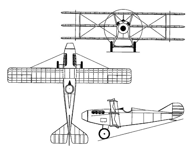 Several modifications included smaller span, and all three planes equal. The body is of better streamline form, and the chassis struts are arched.