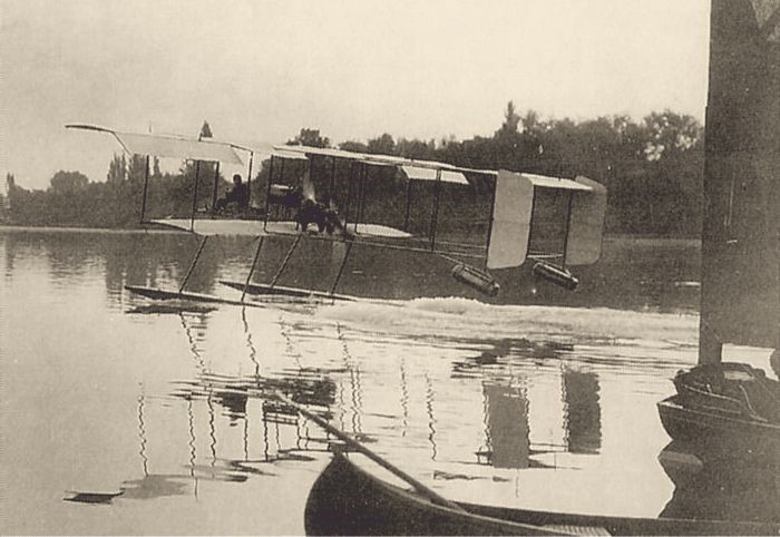 In July 1912 Hélène Dutrieu became the first woman to fly a seaplane, a 50 hp float-equipped Henry Farman biplane, on Lac d’Enghien, north of Paris.