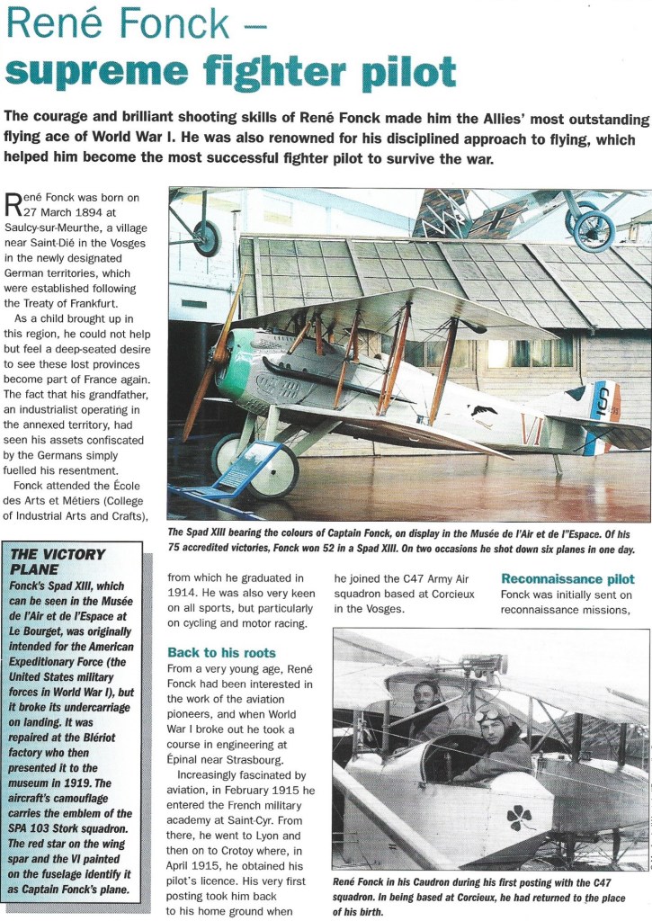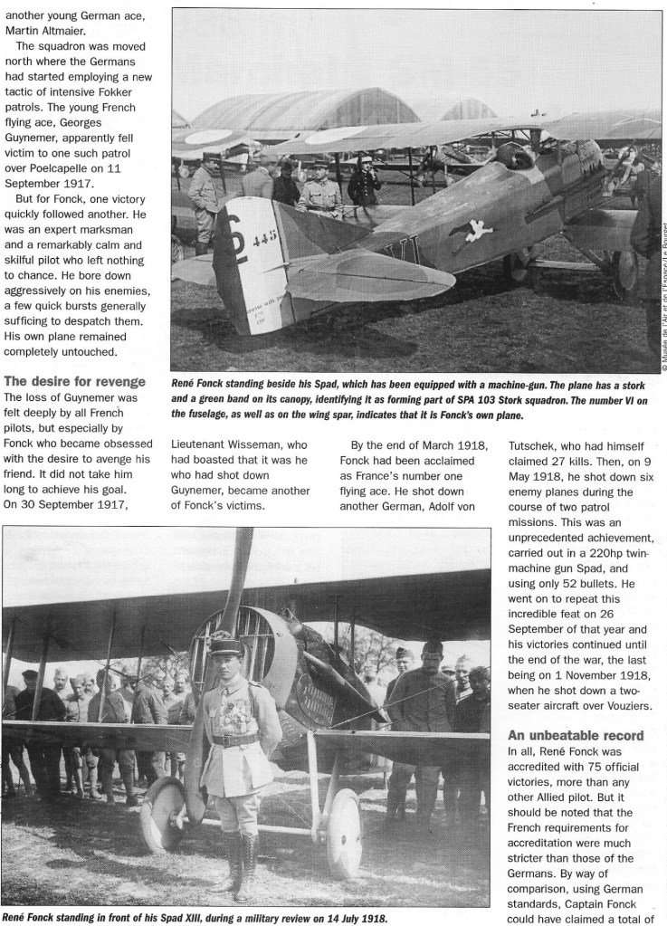 Aged 20 at the outbreak of war, Forick transferred from the French army to the air service in 1915 and eventually in 1917 joined Escadrille SPA 103, one of the units of the famous Groupe de Combat 12 ‘Les Cicognes’, flying SPADs. His personal score mounted slowly, and he soon acquired a reputation as a thoughtful and analytical fighter, twice destroying six enemy aircraft on single days, and on one occasion three of his victims being found to have crashed within a radius of 400 m (440 yards). He was a master of deflection shooting, his sparing of ammunition bordering on the uncanny. His many decorations included two British Military Crosses and the French Croixde Guerre with 28 palms. He died peacefully at his Paris home in June 1953.