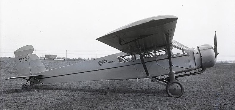 From the 14th to the 22nd of August 1932, Louise Thaden & Frances Marsalis flew prototype Thrush J NC9142 “I.J. Fox” (named for their sponsor, a fur coat company and nicknamed the “Flying Boudoir” by the press) for 196 hours 5 minutes, refuelling in flight from a Curtiss Robin to set an endurance record near Valley Stream, New York. For this and other record-breaking flights, Thaden received the Harmon Trophy in 1936.