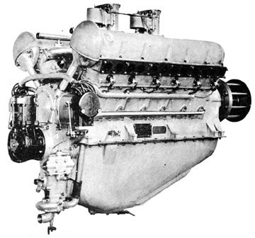 The 1919 Curtiss C-12 was a redesigned K-12. A six-cylinder water cooled engine, it produced 427hp@2250rpm and weighed 705 lb.