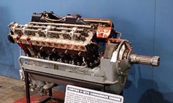 The Curtiss V-1570 Conqueror was a 12-cylinder vee liquid-cooled aircraft engine. Representing a more powerful version of the Curtiss D-12. The Conqueror featured enbloc type jacket construction, in two banks of 6 each. The cylinders were wet sleeve type of heat treated hydraulically forged carbon steel screwed and shrunk into cylinder heads. Four interchangeable tulip valves seating directly in bronze inserts. Th crankshaft was an eight bearing type.