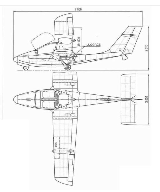 Wing area: 134.5 sq.ft / 12,5 sq.m