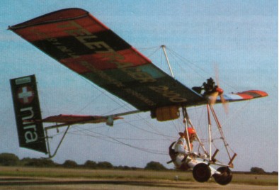 The obvious difference between the Apex 2 and the Eipper product, however, is the choice of power unit and the use of a tractor propeller. Marco uses the Konig SC430 three cylinder radial engine, allied to a three blade propeller, a combination which has proved highly effective. Not only has Marco flown extensively in the Alps with the Apex 2, but he also competed in the 1982 London Paris, where he got a special award for having the quietest aircraft in the competition.