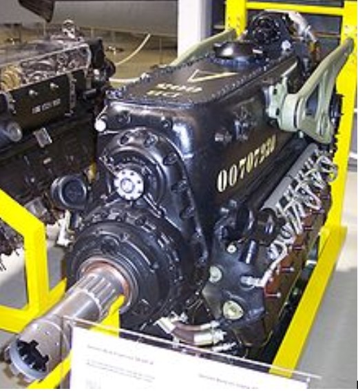 The Daimler-Benz DB 605 is a German aircraft engine, built during World War II. Developed from the DB 601, the DB 605 was used from 1942 to 1945 in the Messerschmitt Bf 109 fighter, and the Bf 110 and Me 210C heavy fighters. The DB 610, a coupled “power system” powerplant comprising a pair of side-by-side configured examples of the DB 605, geared together in the front to turn a single output shaft, was used in Germany’s only operational heavy bomber, the Heinkel He 177.