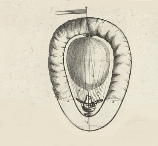 This balloon was most often called the Ballon de Franconville, and was credited to the Comte d’Albon. It was 24 feet high and 16 feet in diameter and had an annular sail that followed the profile of the balloon and was used for steering. This arrangement was used on the balloon when it took off on 16 January 1784 from the gardens of Madame Countesse d’Albon. It was found the 21st of the same month at Montmorency.