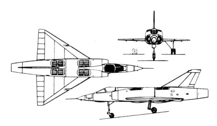 Dassault started work on vertical take-off and landing (VTOL) at the beginning of the 1960s and elected to modify the original Mirage III-001 prototype for VTOL research. This used the cockpit, wings and vertical tail of the Mirage III married to a similar but new fuselage containing a 4850-lb (2200-kg) thrust Bristol Orpheus turbojet for forward propulsion and eight 2160-lb (980-kg) thrust Rolls-Royce RB.108 turbojets mounted vertically for direct lift. These were installed in four groups of two on each side of the centreline fore and aft of the centre of gravity. These lift engines featured retractable intake grilles and the exhausts were covered by fairing doors during normal forward flight.
