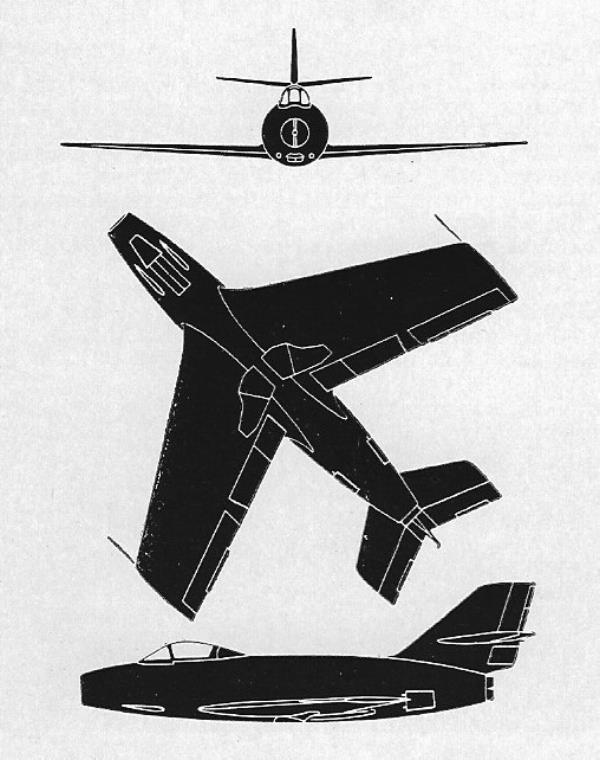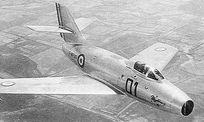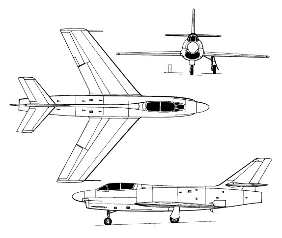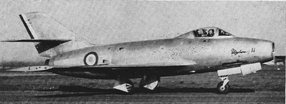 From the Ouragan evolved the swept-wing Mystere I that first flew in February 1951 with a Nene 104B turbojet.