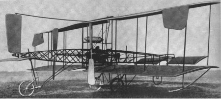 The first Geoffrey de Havilland aeroplane was a biplane built by de Havilland and F.T.Hearle in a shed near Newbury (Berks) in 1908-9. The airframe was American white pine, spruce and ash. The propeller had steel shafts with aluminium blades, and the airframe covered in undoped bleached cotton.