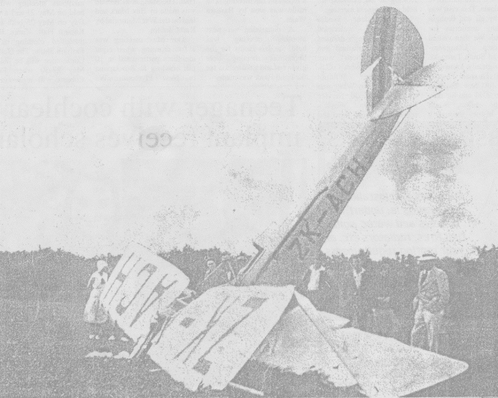 On 29 January 1933 de Havilland DH60M Moth ZK-ACH stalled in a turn and nosedived from a low altitude, near Hawera, New Zealand. The front seat passenger, Guy Putt, 18, was killed, and the pilot, Brian Davies, 18, suffered concussion.