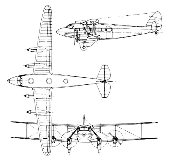 Engines: 4 x de Havilland Gipsy Six inline, 149kW / 200 hp