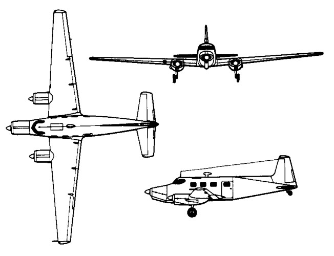 The Drover was based broadly on the D.H.104 Dove, but had three 145 hp / 108kW Gipsy Major 10 Mk 2 engines and tail-wheel landing gear. Built at de Havilland’s Bankstown works, versions were offered with variable- and fixed-pitch propellers as the Drover 1 and Drover 1F respectively; the Drover 2 had double-slotted flaps.