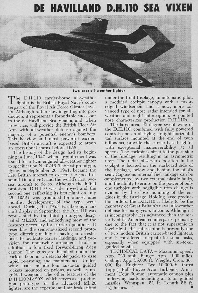de Havilland DH 110 Sea Vixen article 26/01/202401/09/2025Terry Back to de Havilland DH 110 Sea Vixen 1957 Share this: Click to share on X (Opens in new window) X Click to share on Facebook (Opens in new window) Facebook Like Loading... Related