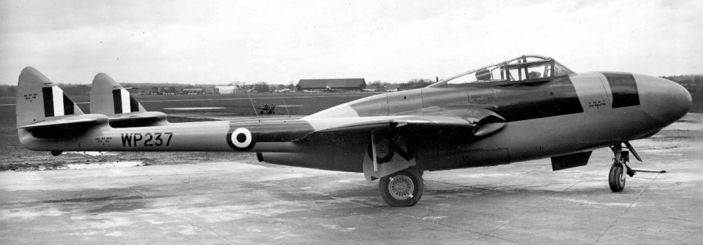 Three prototypes were built, the third of which was completed as the prototype night fighter, the DH112 Venom. The DH113 was originally designed utilising the wings and tail of the single-seat vampire day-fighter which could accommodate a side-by-side configuration, albeit slight offset behind the pilot.