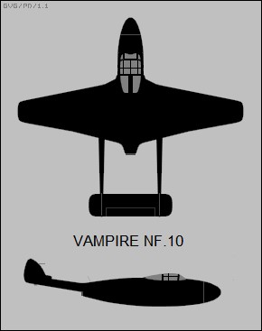 Those DH113 Vampire NF10 aircraft that were originally ordered by Egypt were taken into RAF service in the UK as the NF.Mk.10 and this then led to the further procurement of additional RAF aircraft. Initial service deliveries of the NF.10 were in the spring of 1951. Crews were never happy about the lack of ejection seats. Only 78 NF.10s were built, and they only remained in front-line service to 1954.