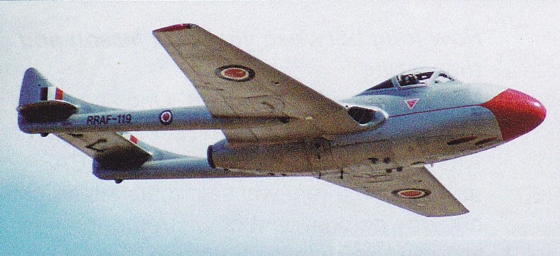 de Havilland DH-115 Vampire Gallery 26/01/202411/07/2025Terry WZ425 de Havilland DH-115 Vampire T.11 No.5 Sqn RAF formation aerobatic team 1956Lead – Flt.lt B.W.Bearman, No.2 – Flg.Off. R.Chick, No.3 – Flg.Off. J.M.D.Cowell, No.4 – Flt.lt. A.D.R.Dawes T.11 Vampire T.11 VH-ZVZ c/n 15392, ex-Rhodesian R4221 Share this: Click to share on X (Opens in new window) X Click to share on Facebook (Opens in new window) Facebook Like Loading... Related