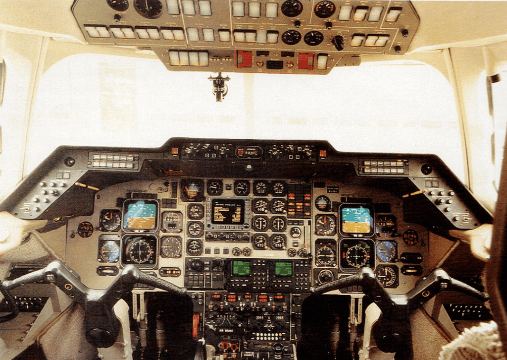 Continued development of the BAe 125 led to the Srs 800, which made its first flight on 26 May 1983, and the BAe 1000. The BAe 125-800 is an extensively revised development of the earlier -700 series, featuring more powerful engines (two Garrett TFE731-5R-1H turbofans) and new longer span outboard wing sections. Capable of 533 mph maximum cruising speed, the -800 has an economy cruise of 461 mph at 40,000 feet over 3454 miles (5560 km). Latest state of the art aerodynamic design theory has been incorporated in the 10 foot outboard wing panel, increasing the span by 4 foot 4½ inches. Fuel tankage has increased from 9440 lbs to 10,000 lbs with a corresponding increase in NBAA VFR range from 2660 nm in the 700 to 3000 nm in the 800 model. Digital autopilot and avionics allow the 800 to join the “glass cockpit” group. Numerous other 800 improvements include a new acrylic windshield, deletion of the ventral fin, nose wheel doors closed when gear down and architectural changes in the cabin area giving increased width and height.