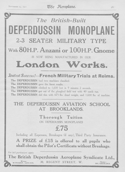 Three were entered in the 1912 War Office military trials at Salisbury Plain, two of them built in England. One, piloted by Prevost, won the second prize of £2,000. The type formed the first equipment of the Royal Flying Corp and the Naval Wing.