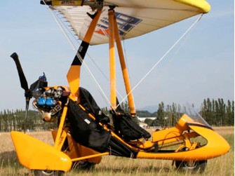 The Voyageur 912 XP15 is a large trike with a topless wing, designed for aerial work or long rallies. It features individual composite seats.