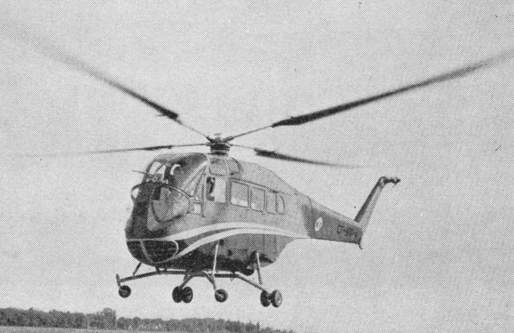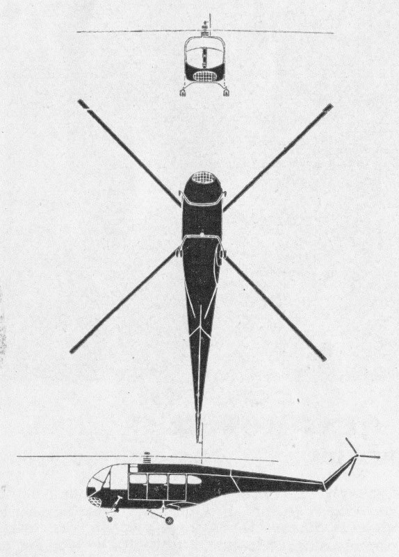 The LZ-5 was similar to the LZ-4 but used a 400hp supercharged Lycoming 580-D engine, and had numerous detail changes. The measurements and layout of this production model very closely resemble those of the hand-made LZ-4. The 8-cylinder supercharged engine is placed beneath the pilot’s compartment; the crankshaft is inclined at an angle of 32degs and drive engagement to the rotor is through a fluid coupling. The front cabin is big enough to take two pilots; the main cabin has room for six passengers with luggage, or four stretchers or cargo over an area of 3.7 square metres. The first example first flew on 27 April 1953. With hingeless rotor unit and hydraulic rotor control system, the prototype received C.A.A. certification for passenger carrying in 1953.