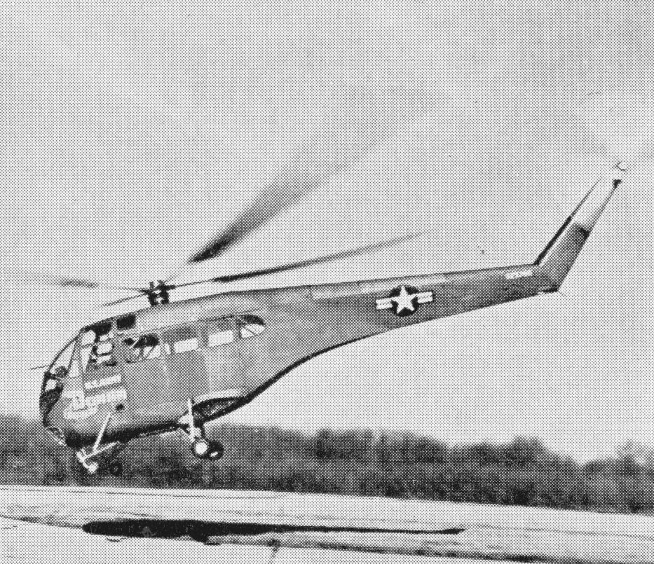 With its 7 ft (2.13 m) wide doors removed on both sides the helicopter showed in mid-1956 its capability of lifting bulky cargo without slings by transporting a 1,900 lb (862 kg) cabriolet Volkswagen.