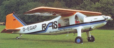 Although most Dornier aircraft are powered by Lycoming engines, the four seat Do 27 Q3 civil version of the Do 27 is Continental O 470 K (230 hp) powered. It has a loaded weight of 3,740 lb., a cruising speed of 124 m.p.h. and a range of 500 miles. The Do 27Q-5 having wider track undercarriage. The Do 27S-1 is a twin-float version of the Do 27Q-5.