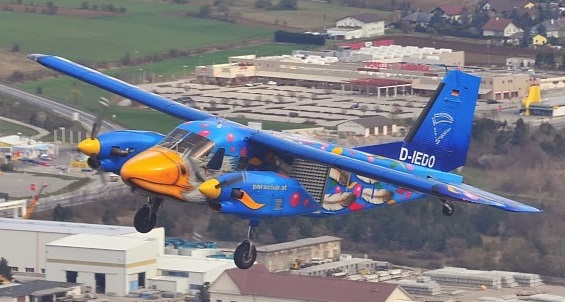 A Slovakian Do-28 G92 derivative of the Skyservant is fitted with two Walter M601-D2 turbine engines. It will haul 15 skydivers to altitude 4 times in one hour.