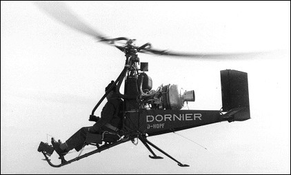 The Do.32 was powered by a 100shp BMW 6012 turbine which drove the rotor through a cold cycle. The prototype was tested on 29 June 1962 and completed the test programme in mid 1963, when the German company displayed a second model at the Paris Air Show. A few others were built but the two-seat derivative (with a 250shp turbine) offered to the German government was not adopted.