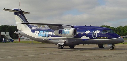 The Fairchild-Dornier 328JET is 32 seat commuter jet airliner. After Fairchild Aerospace had acquired the majority of Dornier in 1996, the new formed company Fairchild-Dornier started in 1997 with the development of the 328JET. The Fairchild-Dornier 328Jet was derived from the Dornier 328 turboprop featuring two Pratt & Whitney Canada PW306B turbofans instead of the turboprops. Next to the engines, only slight modifications to the landing gear and wings were required to convert the Dornier 328 into the 328JET model. FADEC Pratt & Whitneys were hung under the wings, the landing gear was strengthened and new Honeywell Primus 2000 EFIS panels were installed in the cockpit.