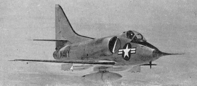 The A4D-1, or A-4A as it became known in 1962, was powered by a single Wright J65-W-4 or W-4B turbojet and carried an internal armament of two 20mm cannon. Up to 2268kg (5000 lb) of external stores could be carried on a fuselage and two wing racks which could, alternatively, support three drop tanks with a capacity of 3028 litres (800 gallons) to increase range. Production continued until 1957, by which time 165 had been built.