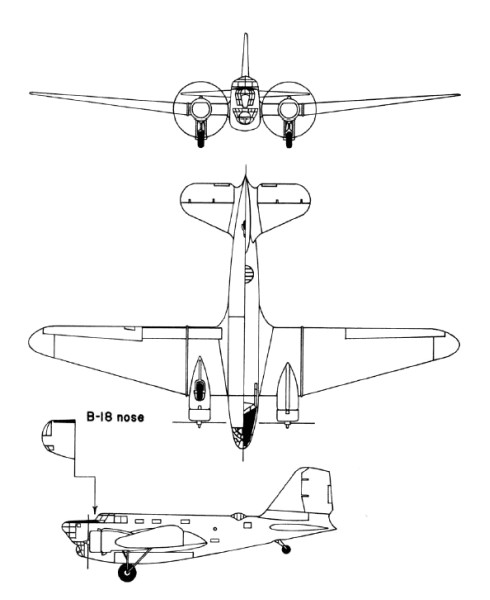 133 B-18s were covered by the first contract, including the single DB-1 which had served as a prototype. Production aircraft, which had the type name Bold, had equipment changes producing an increase in the normal loaded weight, and more-powerful Wright R-1820-45 radials. The last B-18 to come off the production line differed by having a power-operated nose turret, and carried the company identification DB-2, but this feature did not become standard on subsequent production aircraft.