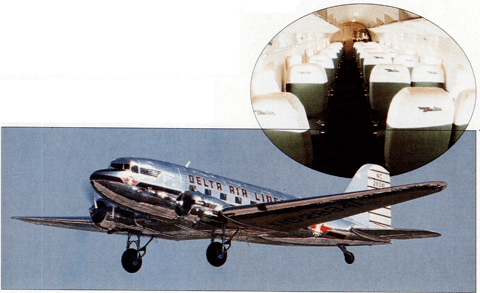 The first DC-3 delivered to Delta Airlines in 1940 and in service until 1958. Had a number of owners before going to Diaz Aviation Corp in 1982. A group of retired Delta employees discovered it at San Juan in poor condition, bought it and shipped it to Atlanta in 1993. After a six year rebuild, Delta 41 flew again in 2000.
