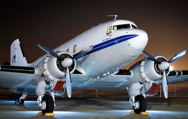 United Air Lines DC-3 over NY’s Central Park on one engine