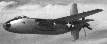 A second prototype was flown for the first time on 1 August 1944, soon afterwards being modified by the addition of a single canopy over the pilot/copilot cockpit. This prototype was destroyed in a crash during December of that year, but by that time the USAAF had decided not to proceed with production of this design, awaiting instead the development of higher-performance turbojet-powered bombers. As an interim step to allow evaluation of turbine power, the first prototype was given a mixed powerplant comprising two 1025kW Allison V-1710-133 piston engines to drive the propellers, plus two 726kg thrust Westinghouse 19XB-2A turbojets mounted in underwing nacelles.