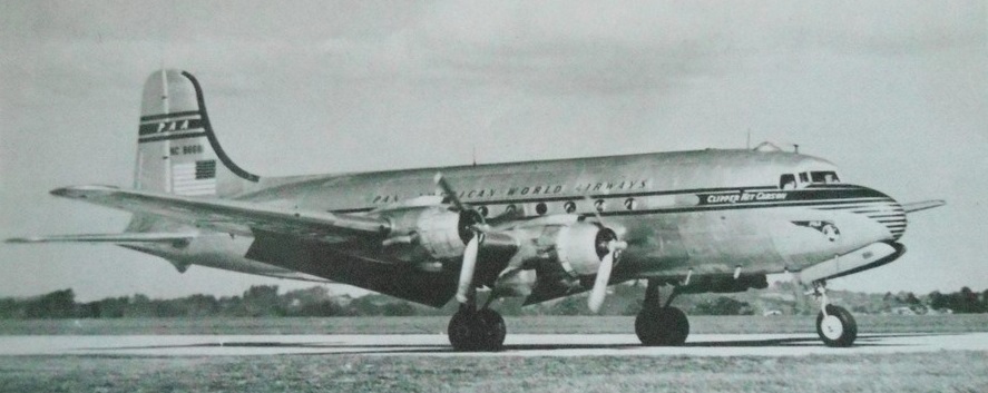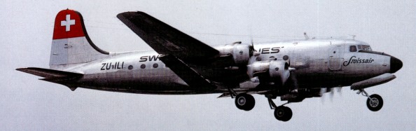 The DC 4 actually saw its first service as the wartime C 54 Skyrnaster (first flight 14 February 1942) when all 24 DC-4A built were taken by the armed forces (designated R5D Skymaster by the Navy).