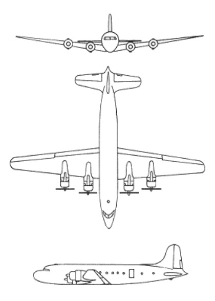 From it were developed the larger DC 6 and DC 7 series the Merlin engined Canadair C 4 and the Aviation Traders Carvair nose loading vehicle transport.