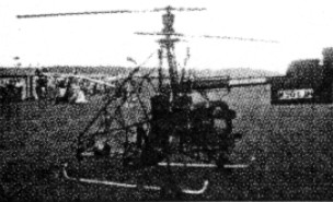 A single seat open frame coaxial pendulum helicopter. Steel tube frame, controlled with stick, throttle and rudder, no collective. Hydraulic controls, contra-rotating and two engines preclude autorotation. Engine: 2 x 65 hp Hirth 2706. Rotor blades: 4 blades, 14’ diameter, 4.75” chord, aluminium, asymmetric aerofoil. No tail rotor.