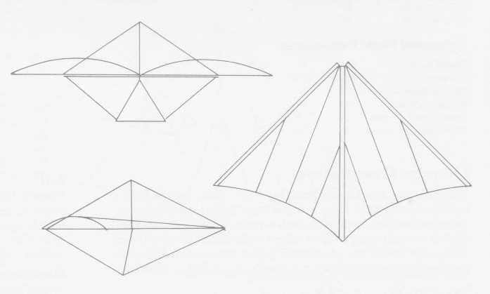 The sail is 3.8 oz Howe and Bainbridge stabilised dacron, guaranteed not to flutter or wrinkle at normal flying speeds.