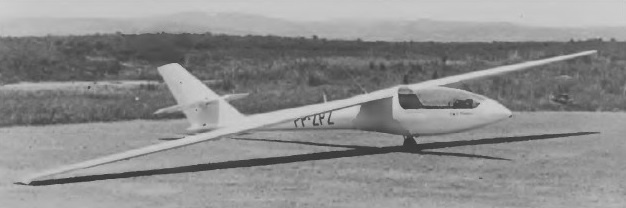 The cantilever high wing has a single aluminium alloy main par, and the wing skin is of plywood/glassfibre honeycomb sandwich. The flaps and ailerons, which are interconnected, are similar except for having wooden spars and the flaps can be used as air brakes by deflecting up to 90°. Up to 176lb of water ballast can be carried. The all-wood fuselage is a semimonocoque, and there is a retractable unsprung monowheel with an internal shoe brake, and a sprung tailskid. The tail surfaces are plywood covered, and stiffened with foam plastics, and the all-moving tailplane has a trim tab in each half.