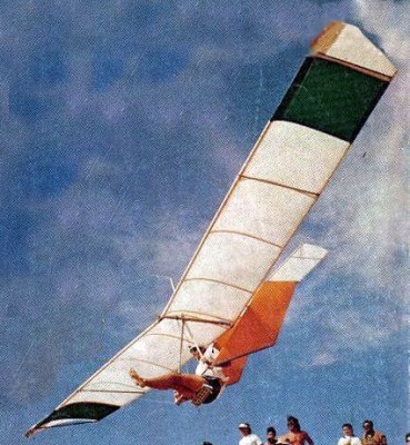 The original Quicksilver (later called the “A” model) was built from the High-Tailer. The twin verticals and high mounted horizontal were replaced with an “A” frame off the trailing edge of the wing, back to a fixed horizontal and a “C” frame rudder (no fixed fin). As the trailing edge of the “C” frame was unsupported, the rudder distorted a lot, but it was very effective at directional control, and the glider responded through dihedral effect (Cl-beta). The “C” frame rudder got replaced with a different “D” frame rudder which solved the distortion problem.